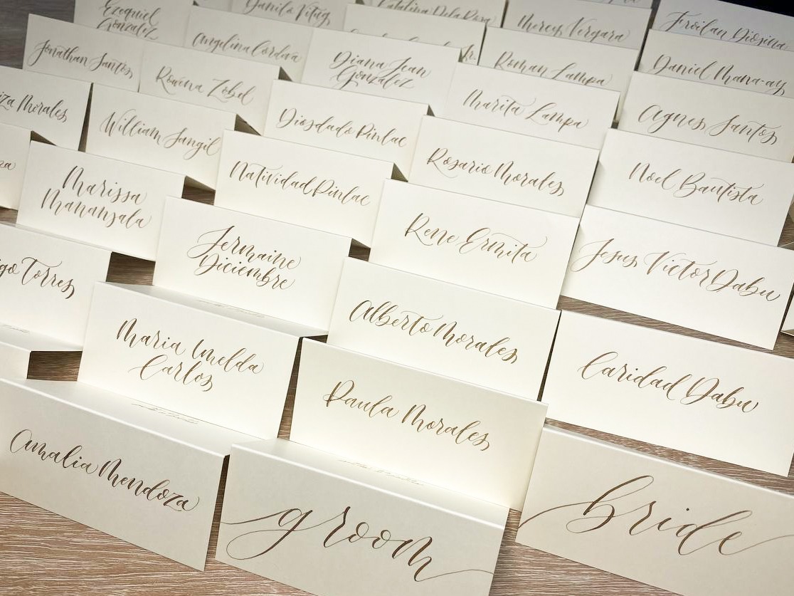 Handwritten calligraphy for envelopes, place cards, invitations, and other event stationery