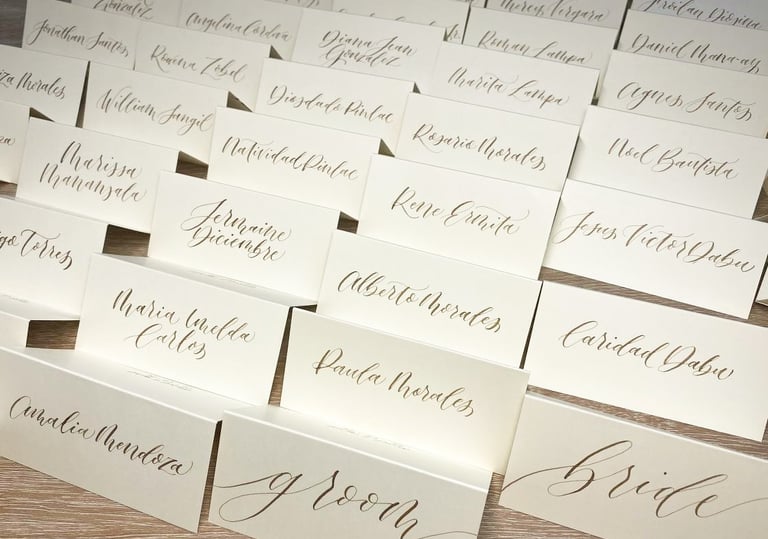 Live calligraphy for weddings, parties, or events (ink calligraphy and gold foiling available)